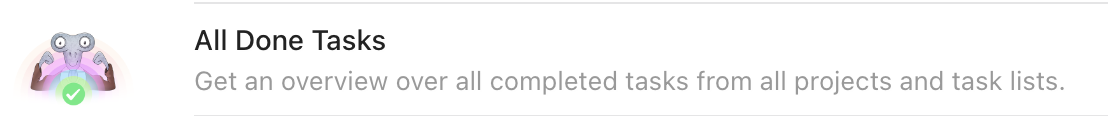 Die Private Ansicht alle erledigten Aufgaben zeigt Ihnen alle erledigten Aufgaben in einer langen liste. Benötigen Sie ein wenig Motivation im Team? Mit der privaten Ansicht alle erledigten Aufgaben können Sie Ihrem Team präsentieren, wie viel an Ihrer Liste bereits geschafft wurde.