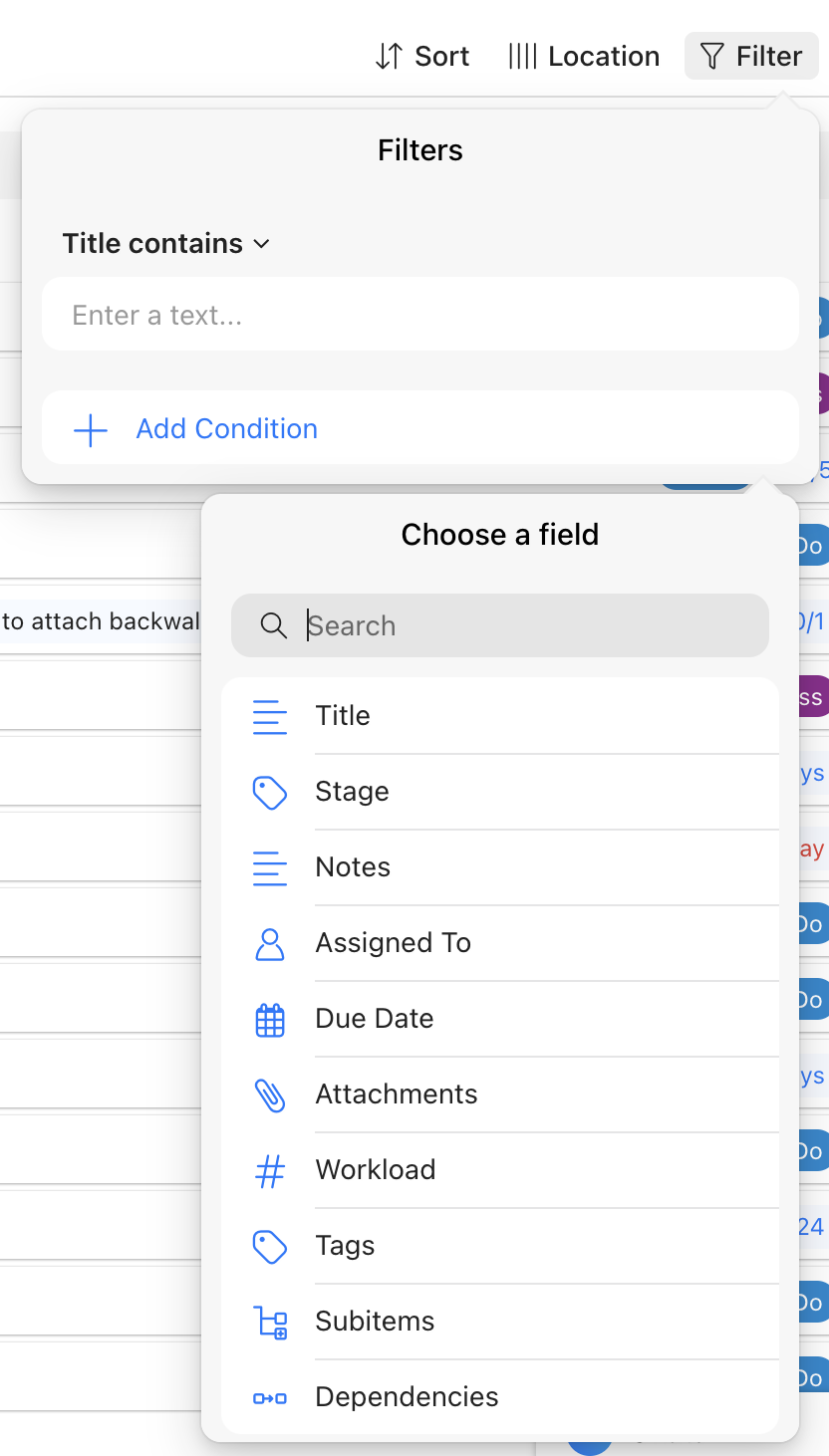 Beim Filtern nach mindestens zwei Bedingungen können Sie zwischen "und" und "oder" wählen. Mit "und" müssen all Ihre aus gewählten Bedingungen auf die Filterergebnisse zutreffen, während bei "oder" immer mindesten eine Bedingung auf die gefilterten Aufgaben zutrifft.