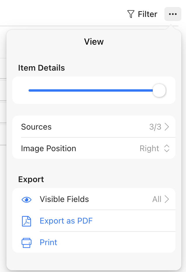 Klicken Sie auf das "..."-Symbol am oberen rechten Rand des Aufgabenlisten, um die Aufgabengröße, die inkludierten Listen und die Position der Bilder anzupassen.