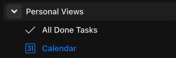 Alle Ihre privaten Ansichten werden im geöffneten Seitenbereich im Abschnitt „Privaten Ansichten“ angezeigt. Sie können die Ansichten mit dem kleinen Pfeilsymbol am rechten Rand ein- und ausblenden.