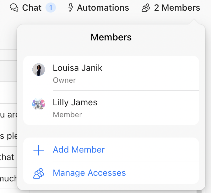 Here you will see a list of all list members. By clicking on one of them, you can assign a new role or edit the member's access.